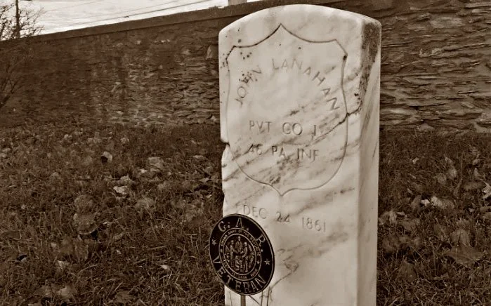 The government issued headstone identifies the executed man as "John Lanahan." The newspaper accounts refer to him as "Lanaghan." The date of death is also mistated as December 24th instead of the 23rd. Private John Lanahan's headstone can be found at St. John's Catholic Cemetery in Frederick, MD. The execution was conducted at Camp White, some three miles west of Frederick. Photo courtesy of Jake Wynn His blog is wynninghistory.com.